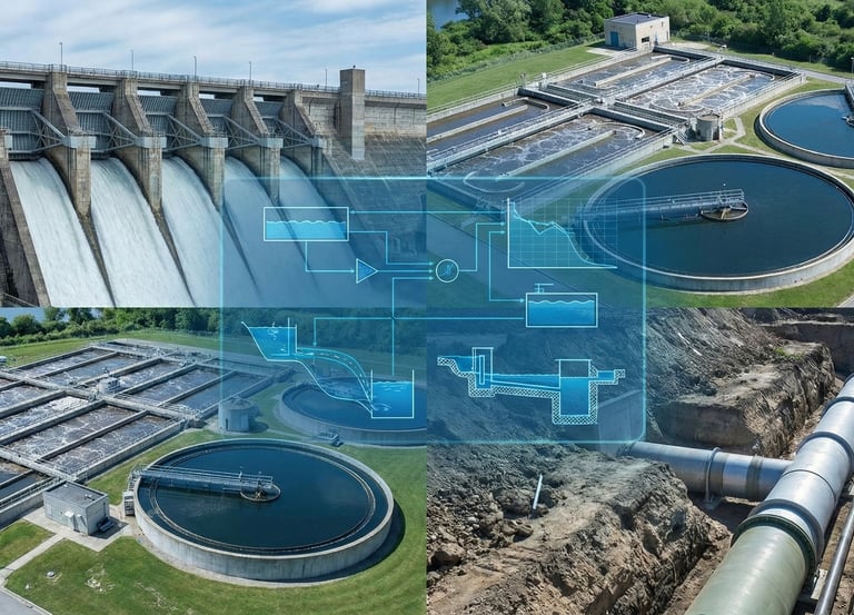 Managing the complete water cycle is critical for public health and sustainable development. Our team provides holistic solutions ranging from large-scale flood modeling to the detailed design of essential municipal water and wastewater systems.